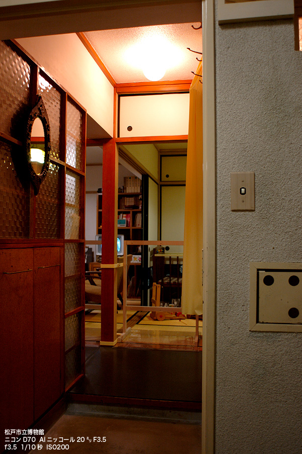 Aiニッコール20/3.5(D70換算30?)玄関から内部。ウチは配管も含めてかなりいじっているが、向かいのお宅ははかなりこの雰囲気を維持していて、このアングルだとほとんどそっくり。博物館行きの建物に住んでいるのだなぁと改めて思う。