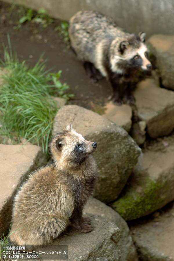 ニューニッコール85/1.8ホンドダヌキ。ロンドン動物園のごとく、オリなし俯瞰撮影が可能な動物舎が少しあるが、大半は日中日陰に隠れて姿は見えない。ニホンカワウソ(もといコツメカワウソ)が狙いだったが空振り。ミーアキャットも少なからず数がいるので悪くないが、荒川遊園ならば掘った穴から出てきた所を狙える(生態を考慮して動物舎の中にかなりの量の土が盛られている)こともあり、あまり撮影欲はわかず。北総開発鉄道大町駅から徒歩30分の道のりをかけて撮影数3カット。相変わらず効率が悪い。