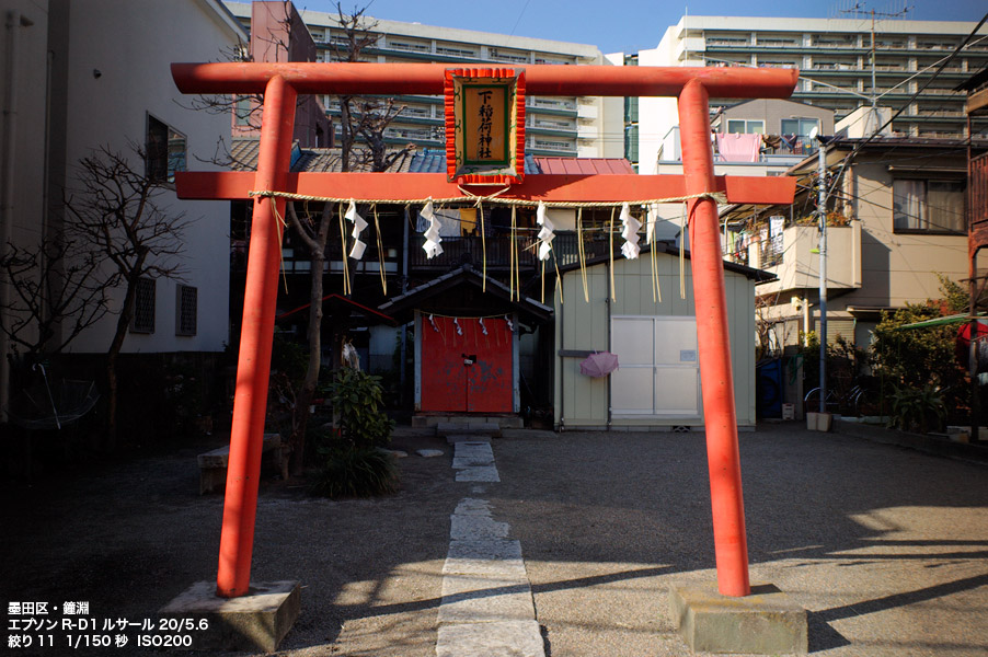 白鬚橋で隅田川を渡るその途中。墨堤通り平行の路地にあるお稲荷さん。鳥居がなければ公園のような風情。